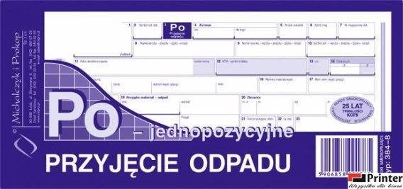 PO przyjęcie odpadu jednopozycyjne
