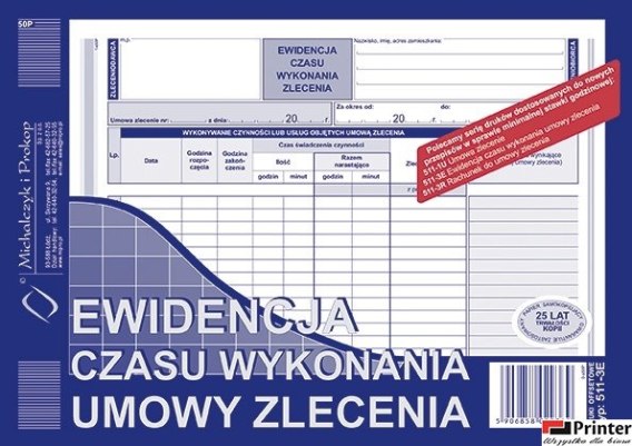 511-3E Ewidencja czasu wykonania zlecenia A5 offset MICHALCZYK&PROKOP