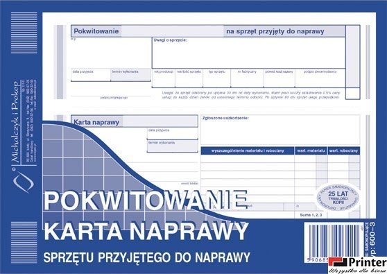 Pokwitowanie - karta naprawy sprzętu przyjętego do naprawy