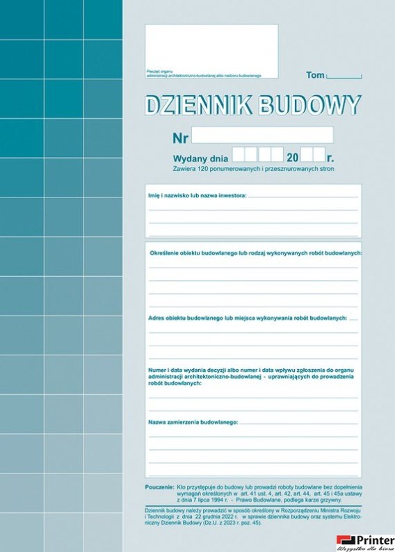 603-2Z Dziennik budowy 120stron A4 Michalczyk i Prokop