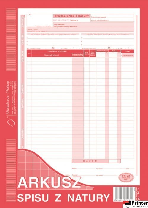 Arkusz spisu z natury A4, 48 kartek wielokopia 10-341-1 DOTTS
