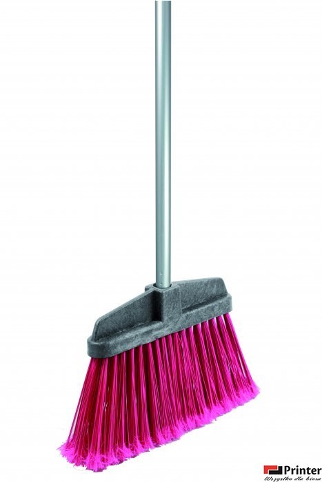 Miotła ogrodowa wykonana z syntetycznego włosia i plastikowej oprawy. Posiada długie, sztywne włókna dodatkowo rozszczepione na końcach, co poprawia skuteczność zamiatania.