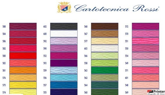 Bibuła dekoracyjna karbowana 50 x 250cm. Gramatura papieru 180g/m_ ._Stopień marszczenia 200%. Opakowanie jednostkowe, worek foliowy zawiera _5 rolek zawiniętych oddzielnie w przezroczystą folię._Artykuł produkcji włoskiej.