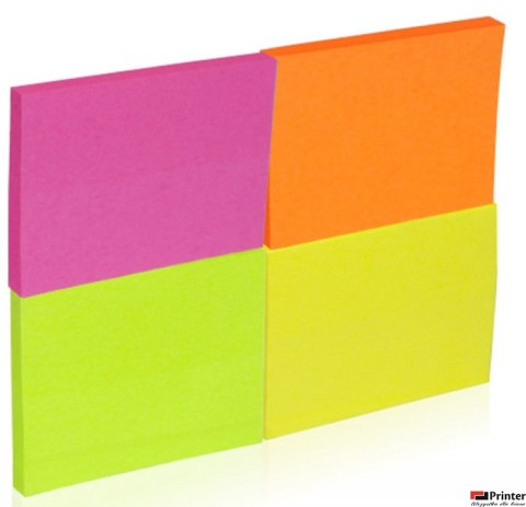 Karteczki samoprzylepne, idealne do pozostawienia wiadomości zarówno w biurze jak i domu_nowe, żywe, fluorescencyjne kolory nie pozwalają przeoczyć pozostawionej karteczki z informacją_ilość karteczek: 4x50 w rozmiarze 38x51mm_gramatura: 70gsm_możliwość kilkukrotnego przeklejania karteczek_klej usuwalny za pomocą wody_kolor neonowy