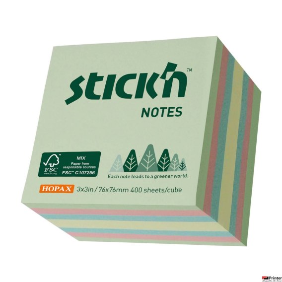 Bloczek kostka 76X76mm, pastel żół/ziel/róż/nieb, 400 kartek 21891 mix kolorów