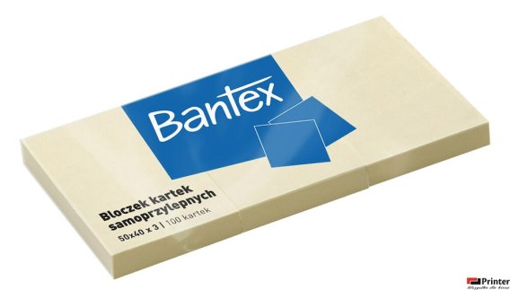 Bloczek samoprzylepne 50x40mm x 3, 100 kartek, żółty BANTEX 400086386