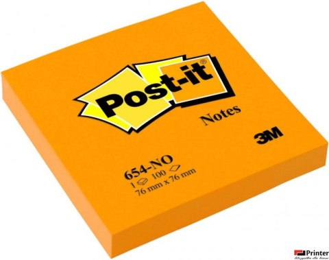 Bloczek samoprzylepny POST-IT_ (654N), 76x76mm, 1x100 kart., jaskrawy pomarańczowy