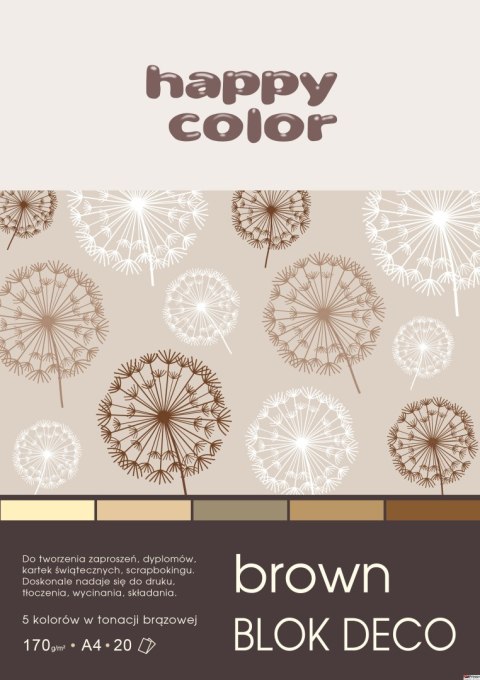 Blok Deco Brown A4, 170g, 20 ark, 5 kol. tonacja brązowa, Happy Color HA 3717 2030-072