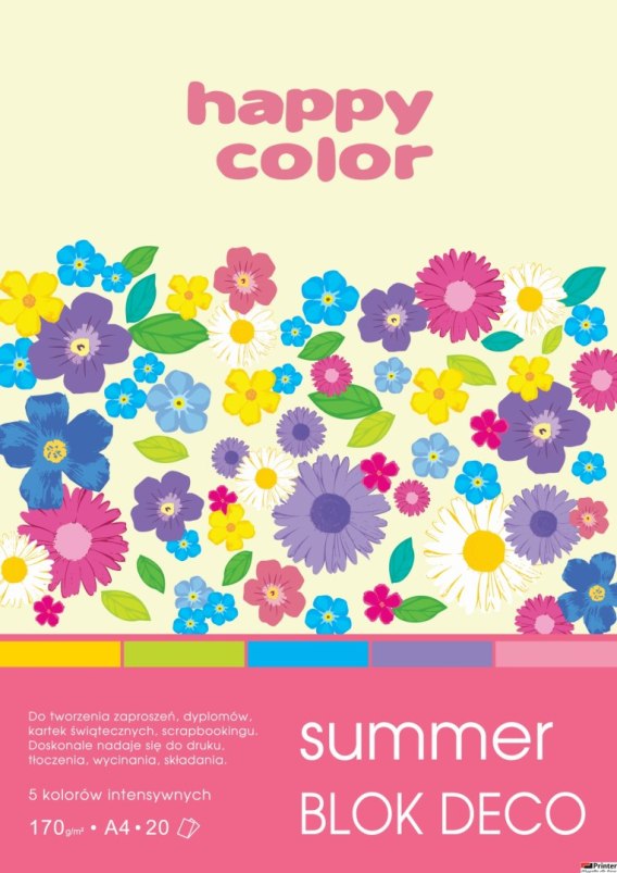 Blok Deco Summer A4, 170g, 20 ark, 5 kol., Happy Color HA 3817 2030-120