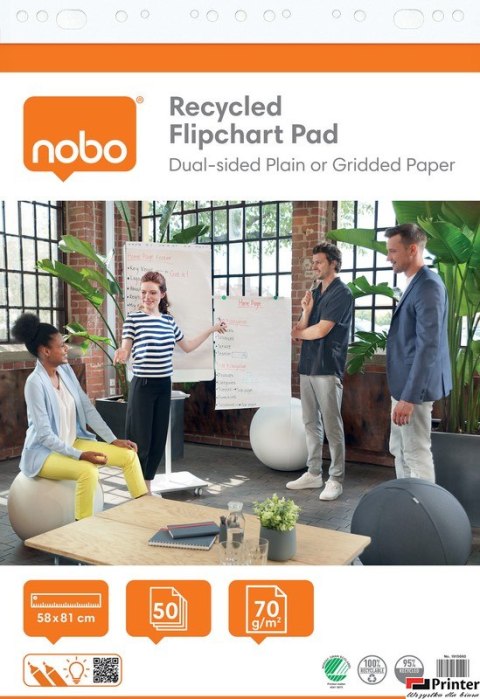 • Blok Nobo Recycled do flipcharta (2 szt.), 58x81cm, 50 kartek 70g.(gładkie/w kratkę)