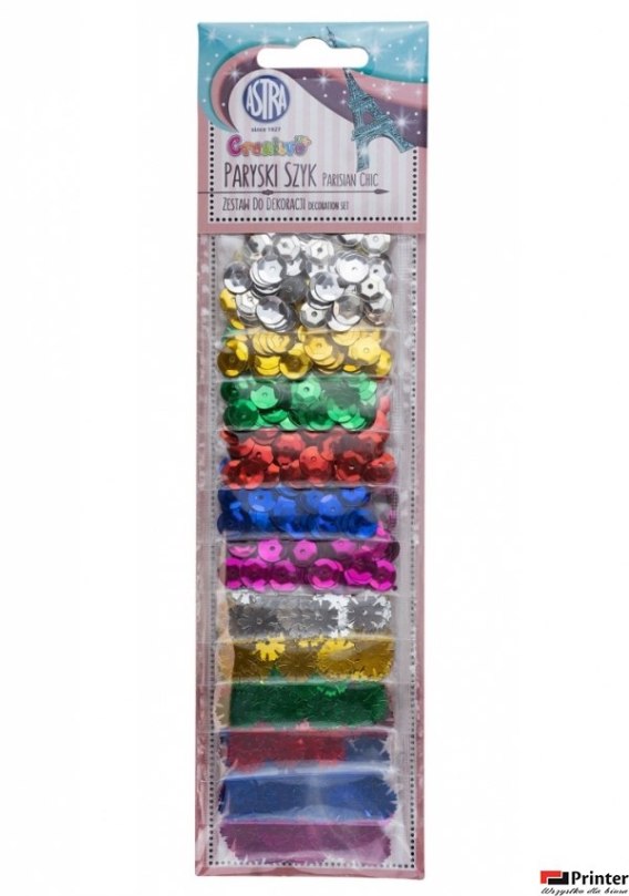 Cekiny zestaw Paryski Szyk mix 12 kolorów x 2g ASTRA, 335120002