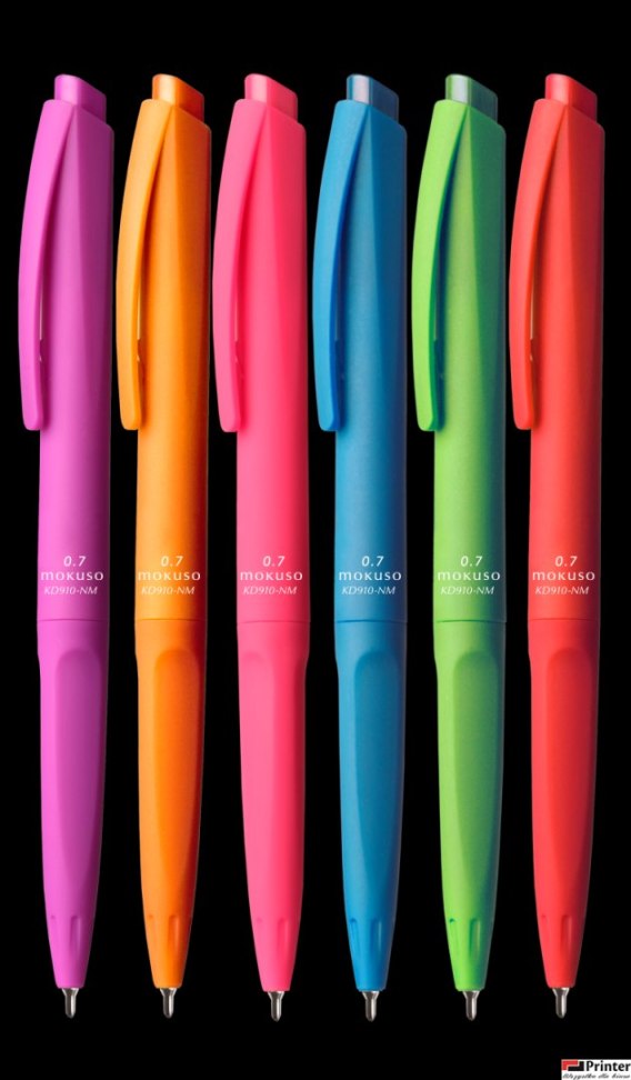 Długopis automatyczny MOKUSO wyposażony w końcówkę igłową i miękko piszący wkład olejowy.
