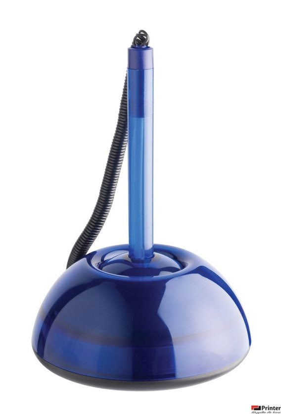 Elegancki długopis na sprężynce_dedykowany punktom publicznym, takim jak: urzędy, punkty pocztowe, recepcje i sekretariaty, etc._długopis utrzymywany w pozycji pionowej_sprężynka odporna na odkształcenia_nowoczesny design_średnica kulki: 1,6mm_grubość linii pisania: 0,8mm_długość linii pisania: ok. 2500m_kolor transparentny niebieski