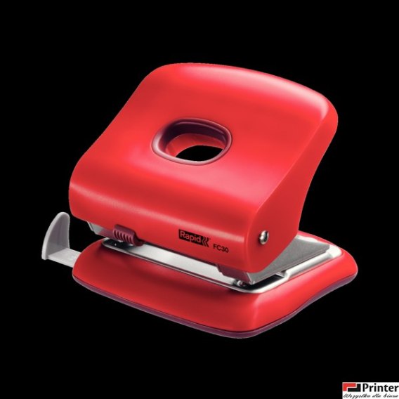 Dziurkacz FC30 Rapid__mocny metalowy dziurkacz z uchwytem i podstawą_ze wzmocnionego tworzywa ABS__odpowiedni do użytku w domu, szkole i biurze__dziurkuje do 30 kartek (papier 80 gsm)__wytrzymała metalowa konstrukcja zapewnia perfekcyjne dziurkowanie__uchwyt i podstawa ze wzmocnionego tworzywa ABS__zintegrowany, łatwy do opróżniania plastikowy pojemnik na ścinki__okres gwarancji: 5 lata__jednostka sprzedaży 1 sztuka