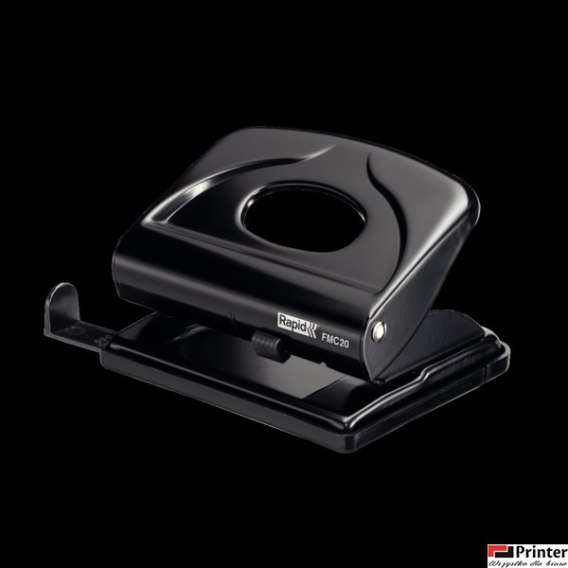 | Katalog_2020naz | Dziurkacz mały, metalowy FMC20 RAPID, czarny, 5 lat gwarancji, 20 kartek |