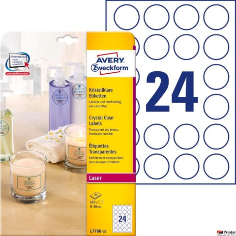 Etykiety Crystal Clear L7780-25 Q40 25 ark. przezroczyste Avery Zweckform
