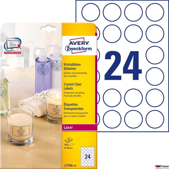| Nazwa B2B | Etykiety AVERY ZWECKFORM przezroczyste Crystal Clear A4, 25 ark./op., _40 mm, przezroczyste |