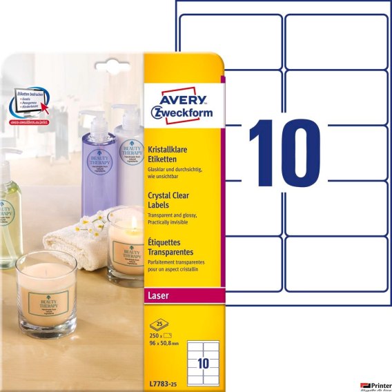 Etykiety Crystal Clear L7783-25 96 x 50,8 25 ark przezroczyste Avery Zweckform