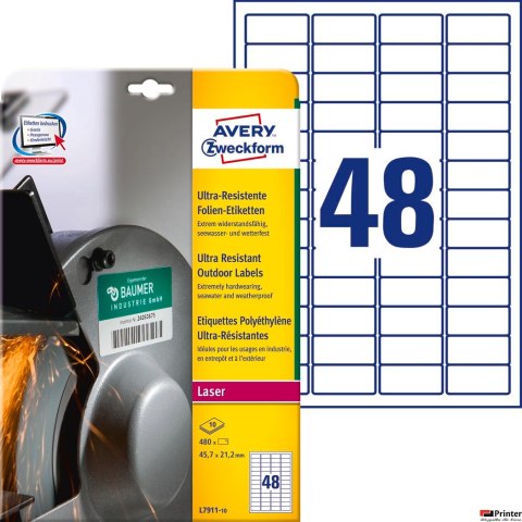 Etykiety UltraResistant L7911-10 45,7x21,2 10ark polietylenowe Avery Zweckform