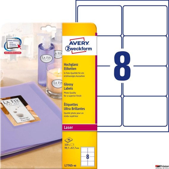 Etykiety błyszczące L7765-40 99,1 x 67,7 40ark Avery Zweckform (X)