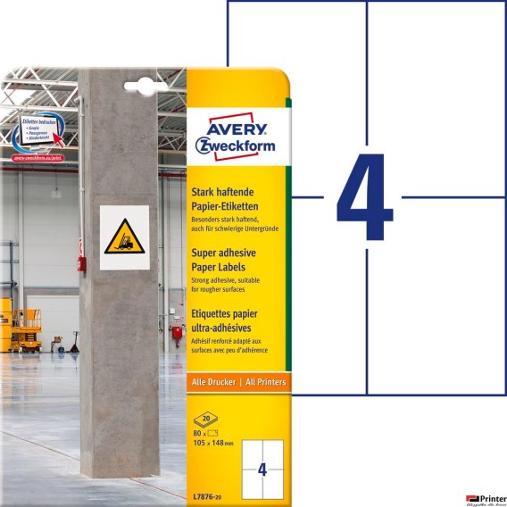 | Nazwa B2B | Etykiety papierowe do trudnych powierzchni 105x148mm opakowanie 20 arkuszy L7876-20 Avery Zweckform |