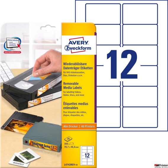 Etykiety na kasety L4742REV-25 78,7 x 46,6 25ark Usuwalne, Avery Zweckform