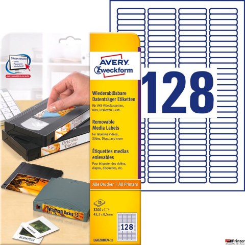 Etykiety na przezrocza L6020REV-25 43,2x8,5 25ar Usuwalne, Avery Zweckform (X)