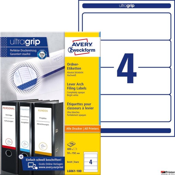 • Etykiety na segregatory posiadają unikalną i nowoczesną technologię UltraGrip: trójwymiarowa powierzchnia na arkuszach gwarantuje równomierne pobieranie i prowadzenie etykiet w drukarce