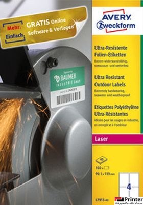 Technologia druku:•LASER: Tak•LASER COLOR: TakCechy produktu:•Rozmiar etykiety (mm): 99,1 x 139•Etykiet / arkusz: 4•Arkuszy/ opakowanie: 40•Etykiet/ opakowanie: 160•Kolor: białe•Format: A4•Rzędów/ arkusz: 2x2