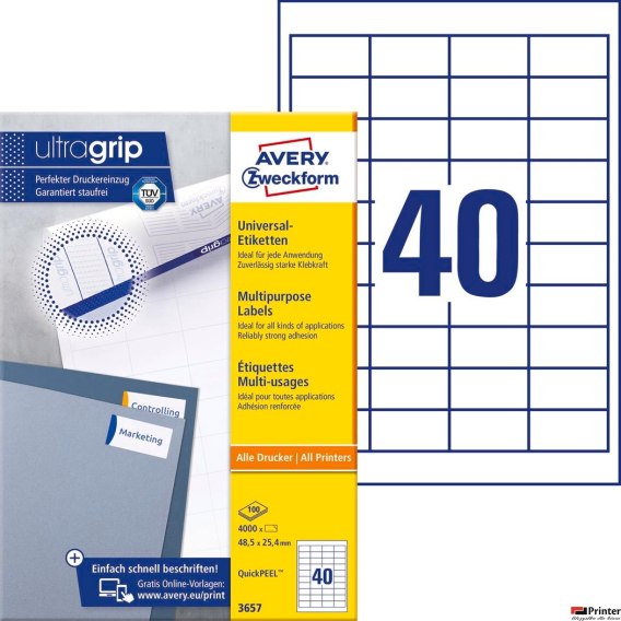 | Katalog_2021naz | Etykiety uniwersalne 3657 48,5 x 25,4 100ark. trwałe, Avery Zweckform |