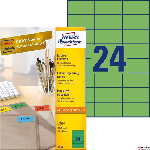 • Etykiety zielone 3450 70 x 37 100 ark trwałe, Avery Zweckform (X)