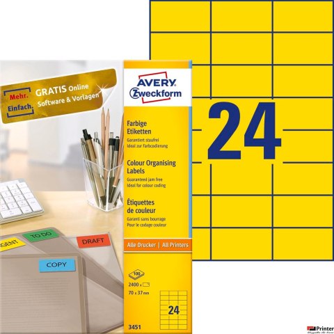 Etykiety żółte 3451 70 x 37 100 ark trwałe, Avery Zweckform