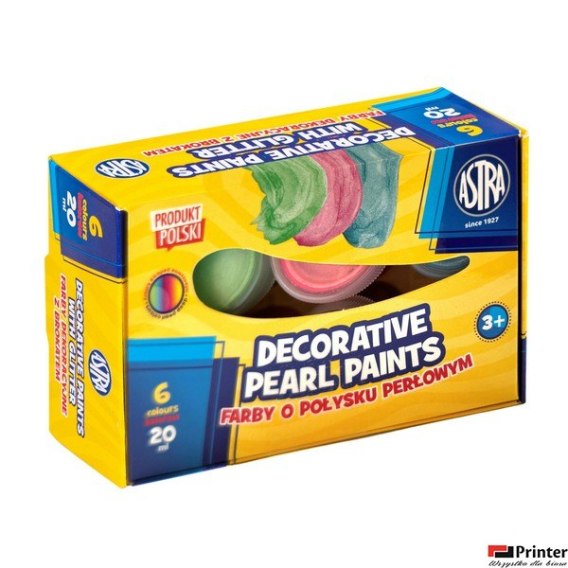 Farby dekoracyjne Astra o połysku perłowa. 6 kol x 20 ml STANDARD BOX