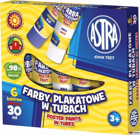Farby plakatowe Astra 6 kolorów - tuba 30 ml, 83119900