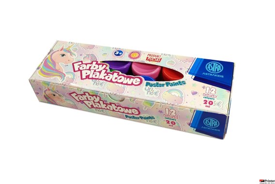 Farby plakatowe Jednorożec 12 kolorów 20 ml ASTRA, 301221008