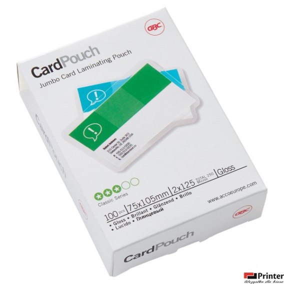 Folie do laminacji różnego rodzaju kart, w tym kart okolicznościowych, licencyjnych i materiałów reklamowych. Dostępne w szerokiej gamie formatów i grubości. Format: 75 x 105 mm. Grubość 125 mikronów, błyszczące. Opakowanie: 100 sztuk.