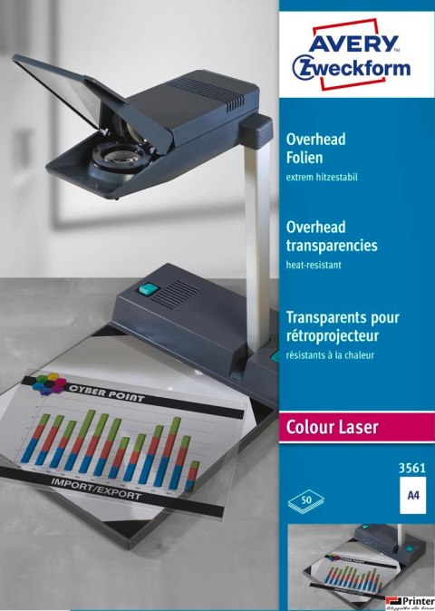 Folie do rzutników 3561 A4 50 ark powlekane, grubość 0,13 mm, Avery Zweckform