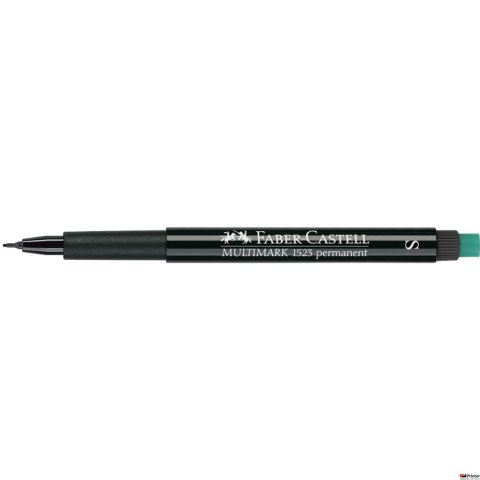 Marker uniwersalny permanentny Multimark Faber-Castell w kolorze czarnym. Z fibrową końcówką i zintegrowaną specjalną gumką. Niezawodny na prawie wszystkich powierzchniach np. metal, szkło, plastik (PP, PET, PVC itd.), płyty CD/DVD, folie do projektorów, kamień, drewno. Szybkoschnący, intensywny tusz odporny na działanie światła i wody. Rozpuszczalny w wodzie. Specjalna zintegrowana gumka sprawnie dokona korekt na prawie wszystkich gładkich powierzchniach. Szerokość linii pisania: S (0,4 mm). Dostępny 3 szerokościach linii: S, F i M, również w wersji niepermanentnej. Obudowa i zatyczka wykonane z tworzywa pochodzącego z recyklingu.