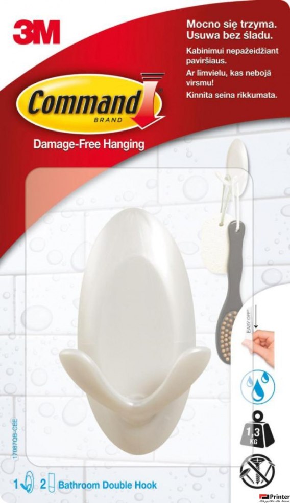 Hak łazienkowy COMMAND_ (17087QB), podwójny, duży, biały