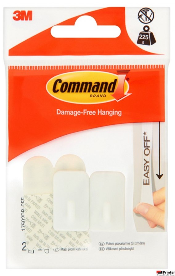 Zapomnij o gwoździach, śrubokrętach czy wiertarkach z Command_ haczyki można łatwo i szybko zamontować_do zastosowania ogólnego_mocno się trzyma, łatwo usuwa_nie niszczy powierzchni_dopuszczalne obciążenie do 225g na 1 pasek_w opakowaniu 2_haki i 2_małe_paski_kolor: biały
