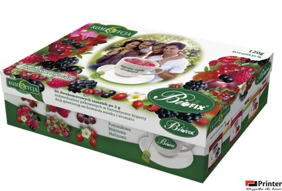 Opis produktu: Kolorowe pudełeczko, w którym znajdziemy aż 6 smakowych kompozycji herbatek Bi fix: malinową, żurawinową, dziką różę, poziomkową, wiśniową i wieloowocową. W szkatułce znajduje się 60 ekspresowych herbatek (po 10 z każdego rodzaju). Każda z nich zamknięta jest w hermetyczną kopertkę, która pozwala na zachowanie niepowtarzalnych aromatycznych i smakowych właściwości naparu. Napoje te są wyjątkowo smaczne, jak również wywierają zbawienny wpływ na nasz organizm.