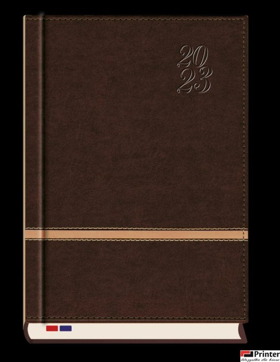 Oprawa - skóropodobna kombinowana, wycięty register dwuprzebiegowy, dwie tasiemki, perforowane narożniki.