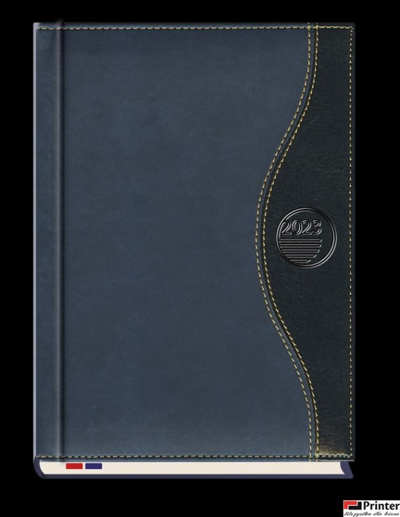 Oprawa - skóropodobna kombinowana, wycięty register dwuprzebiegowy, dwie tasiemki, perforowane narożniki.