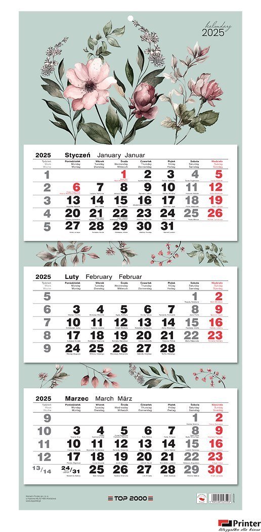 Kalendarz Trojdzielny Top 2000 Mix 2025 31x71 400193417