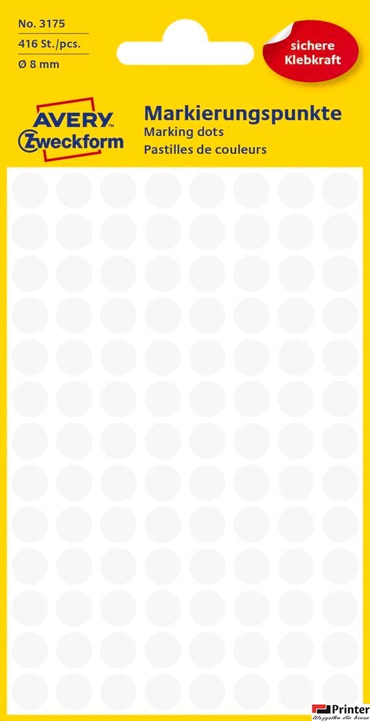 | Nazwa B2B | Kółka AVERY ZWECKFORM do zaznaczania białe 416 etyk./op., _8 mm, białe |
