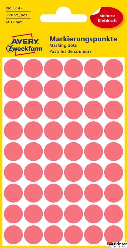 | Nazwa B2B | Kółka AVERY ZWECKFORM do zaznaczania kolorowe 270 etyk./op., _12 mm, czerwone odblaskowe |
