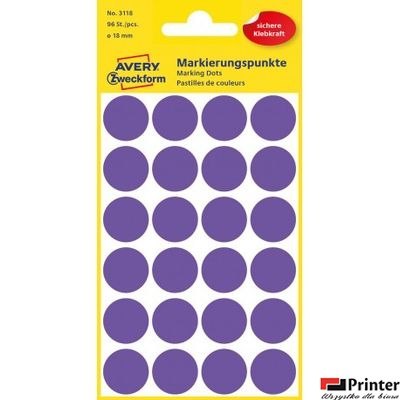 Kółka do zaznaczania kolorowe, 96 etyk./op., Q18 mm, fioletowe, AVERY ZWECKFORM, 3118