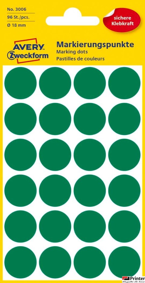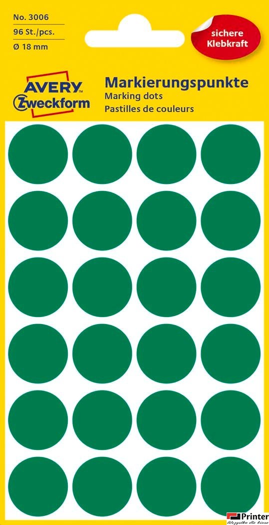 Katalog_2020naz Trwałe kółka do zaznaczania _18mm, 96szt./op. Zielone 3006 Avery Zweckform
