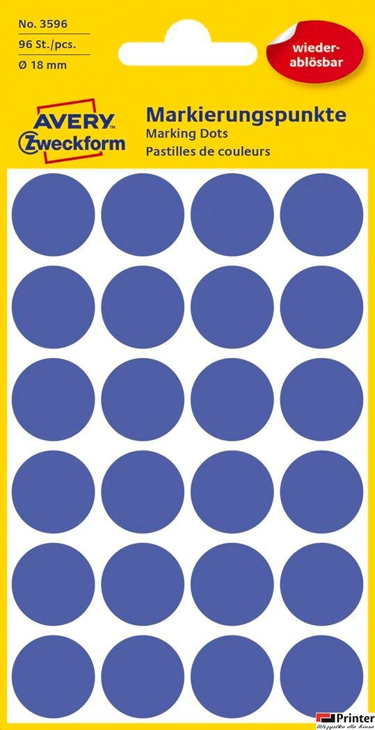 Nazwa B2B Usuwalne kółka do zaznaczania _18mm, 96szt./op. niebieskie 3597 Avery Zweckform