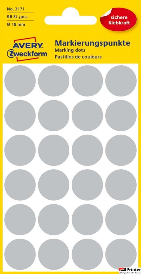 | Nazwa B2B | Kółka AVERY ZWECKFORM do zaznaczania kolorowe 96 etyk./op., _18 mm, szare |